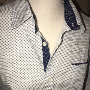 Paper Denim & Cloth XL slim stretch white and blue button up shirt