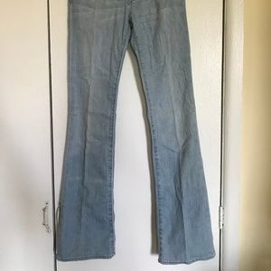 Never Worn, Paper Denim very soft light colored jeans, straight leg, slight flare, slight low rise