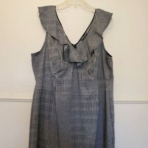 Paper Doll Herringbone Patch Sleeveless Zip Back Ruffle Neck Dress Womens Sz 3X