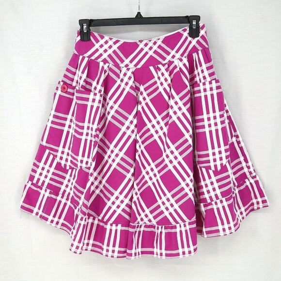 Paper Doll Skirt Juniors Large Pink White Plaid Pleated Lined Swing Rockabilly