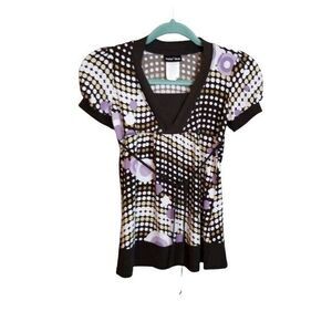 Paper Doll Womens Sz M Multicolor Polka Dot Short Sleeve Blouse
