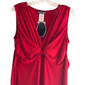 Red dress, Paper Doll dress, knot front, sleeveless dress, XL dress, polyester spandex, professional wear, elegant red, Mexico made, comfortable fit, machine washable, business casual