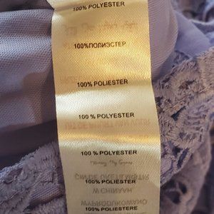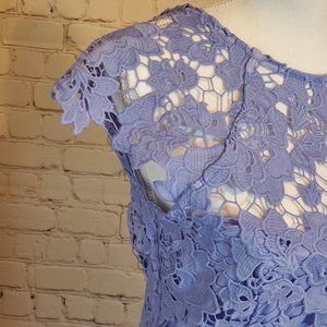 Paper Dolls Bardot Crochet Dress, scalloped open back. Blue. Size 8 ((small).
