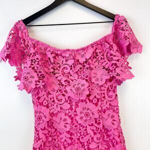 Paper Dolls Size 8 US Off Shoulder Crochet Lace Sheath Dress Pink Knee Length