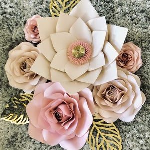 6 Paper Flowers for Weddings, Parties, Baby Showers and Room Decor.