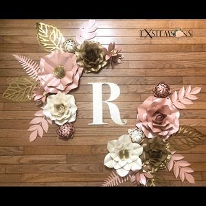 14 Piece Paper Flower Set perfect for, birthdays, baby showers, bridal showers, nurseries and room decor.