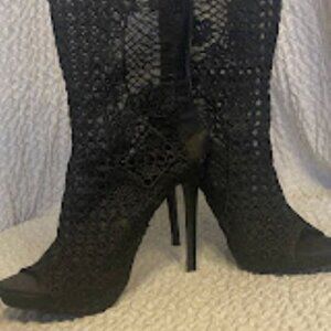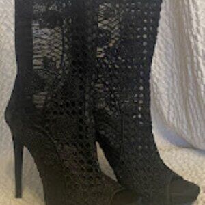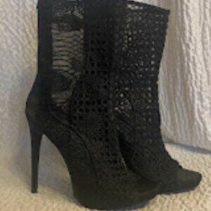 Paper Fox Women's Black Sheer Designed High Heel Ankle Boots Sz 9.5