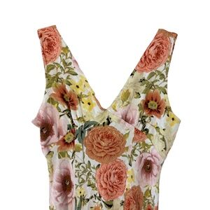 Paper Heart Floral Midi Dress Women’s Size L V-Neck Sleeveless Garden Print Linen blend
