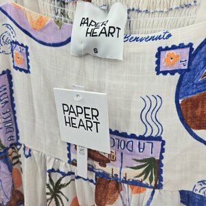 Paper Heart Australia White Italy Photo Coastal Rayon Linen Maxi Dress Small
