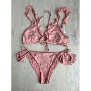 Paper Heart Swim Bikini Ruffled Top & Bottom Set Rose ( US 8 )