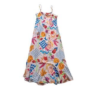 Paper Hearts Fun Colorful Cut Out Maxi Dress Sun Stars Floral Large Multi-Color