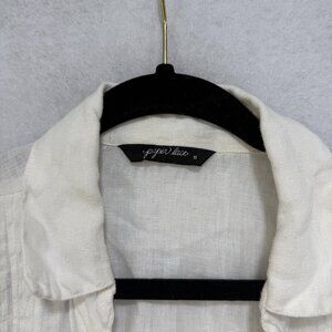 Paper Lace Shirt Womens Small White Linen Button Front Long Sleeve Ruffle Top