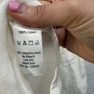 Classic casual and dressy white linen shirt—perfect for warm weather or layering.