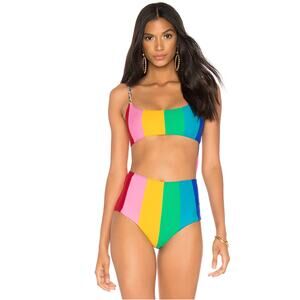 Paper London Sunshine Rainbow Stripe High Waist Bikini