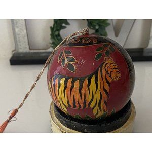 Paper Mache Hand Painted African Tiger Theme Christmas Tree Ornament Vintage EUC
