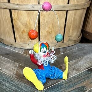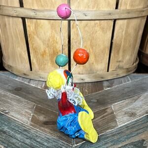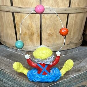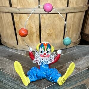 Paper Mache Juggling Clown Circus Figurine Vintage Hand Painted Made in Mexico