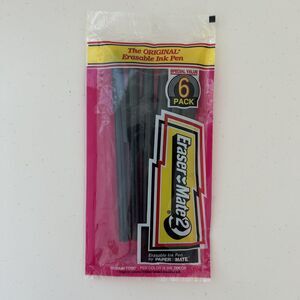 Paper Mate Pens Eraser 2 Gillette Black Ink Medium Point Pack of 6 Sealed 90s Vtg NOS.