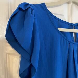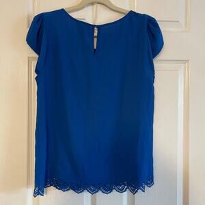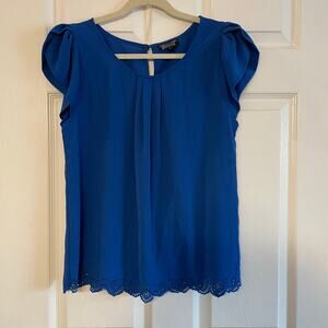 Paper Moon Shirt for Stitch Fix Women's Size Large , Blue, Cap Sleeve. Scalloped design at the hem. Perfect top to pair with a black powersuit, or a great pair of white jeans