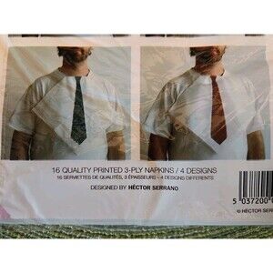 The product is a 16 set of vintage unused paper napkins with a unique design by Hector Serrano. These 3-ply napkins are perfect for dressing up a dinner table and add a touch of charm to any dining experience. With 4 different designs available, you can choose the one that best fits your dinner party theme or personal style. Made of quality paper, these napkins are both practical and stylish, making them a great addition to any collector's item or dinnerware collection.