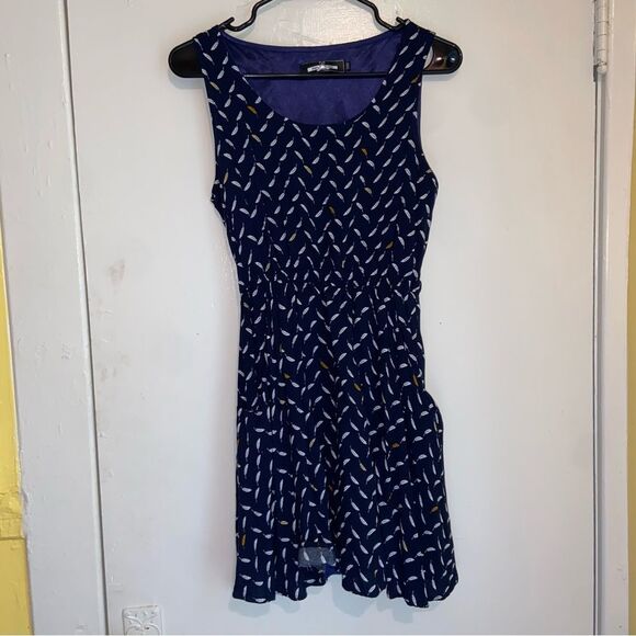 Paper Plane London Navy Feather Print Sleeveless Dress Women’s Small