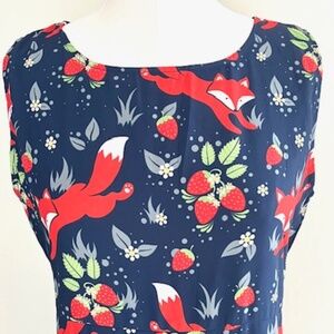 Paper Plane London Navy Fox & Strawberry Pattern Dress Size L/XL