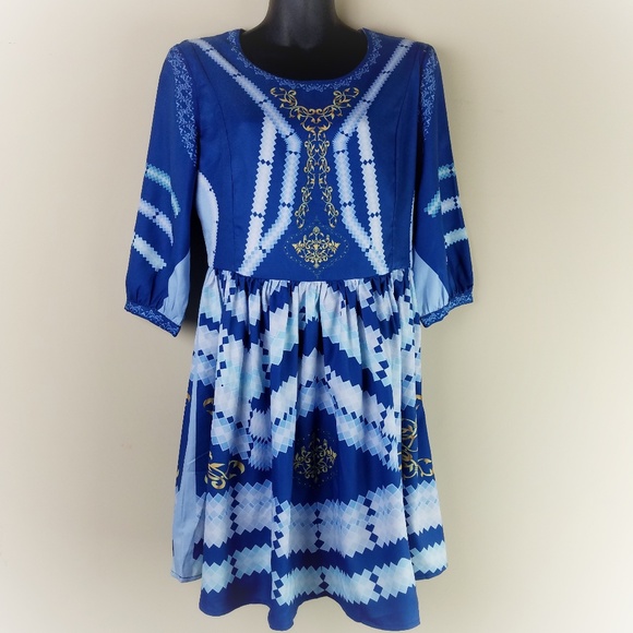 Good preowned condition minus a couple small fabric pulls. See last photos. Fabric does not stretch. Pretty fitted princess bodice.