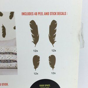 Paper Riot Co. Removable Decals Boho Feathers Quick Stick 48 Decal Stickers New