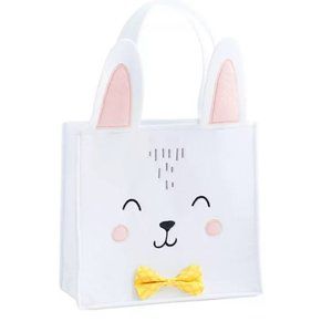 Designed by Paper Source, your kids will look absolutely adorable as they fill up this sweet bunny Easter tote. Featuring a smiling bunny with pink cheeks, long ears and embroidered eyes, nose & hairs. This bag allows you to personalize it. Add a fluffy pom pom tail, bow/bow tie or initials. Perfect for holding Easter eggs, sweets and treats or to use as an Easter gift bag.