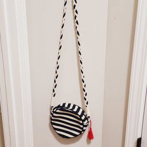 Paper Source Nautical Rope Strap Navy & White Striped Circle Purse with Cherries