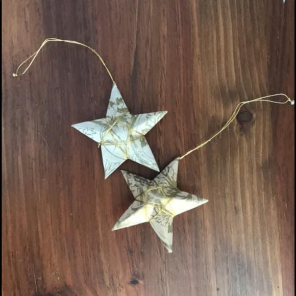 Hand folded paper stars. Hang from a window pane, door knob, etc. Pair sold together.