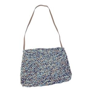 Paper Straw Colorful Crossbody bag, Teal, dark blue, Tan. Snap button closu…