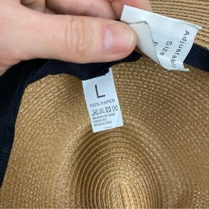 Cute sun hat. 100% paper. Size Large. Adjustable. Beige tan color with brown band. New without tags.