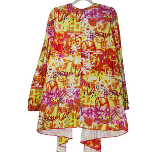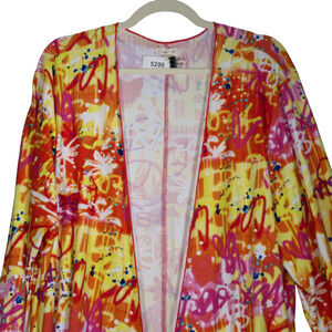 Paper Tee Cardigan Sweater Womens Size 3X Graffiti Long Duster Open Boho Hip