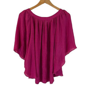 Paper Tee Flowy Hot Pink Blouse XL Flared Sleeves Babydoll Fit Lightweight Thin
