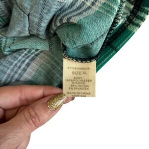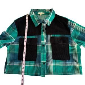 Paper + Tee Green and Black Cropped Plaid Button Up Shirt Juniors Size XL