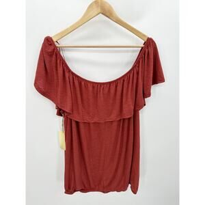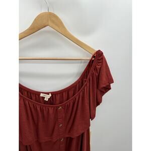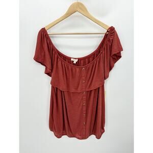 Paper + Tee Rust Red Ruffle Off Shoulder Faux Button Down Top Womens Size 3X NWT
