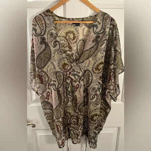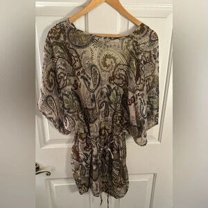 Paper Tee Sheer Paisley Short Sleeve Blouse Size Large