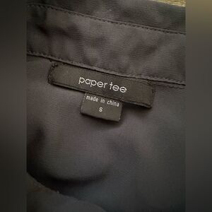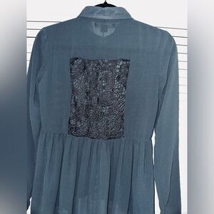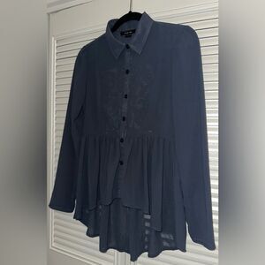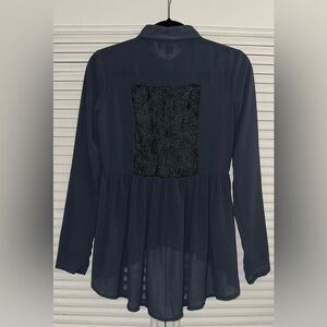 Paper Tee Women's Sheer Embroidered Back Peplum Style Button Up Top Size S