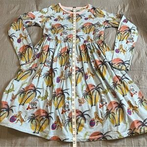 Paper Wings Girls XL Long Sleeve Dress Orgaic Cotton Bunny Tiger Palm Tree Print