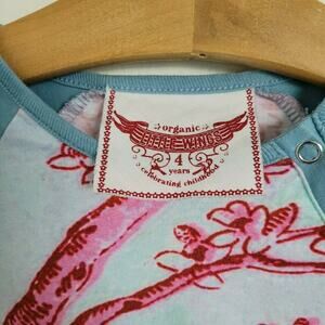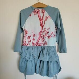 Paper Wings Long Sleeve Winter Owls Dress, size 4. Made fron organic cotton. Light blue and red. Play condition for multiple light stains throughout. Please see pictures.