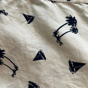 Paper denim & cloth boy’s short sleeved button down, white & navy. Sailboat and palm tree print. NWT! Boy’s size 5