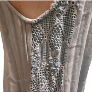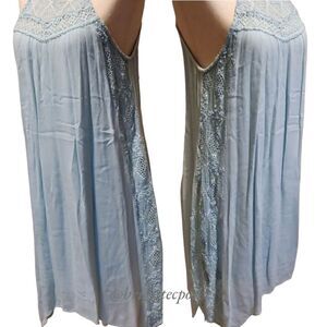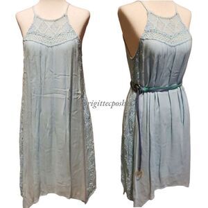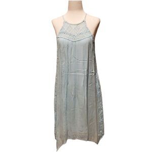 This asymmetrical Pastel Blue Dress is breezy, flirty with airy crochet lace insets details.