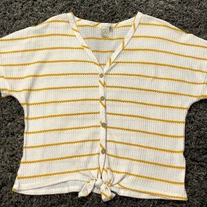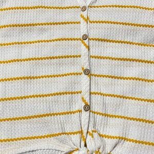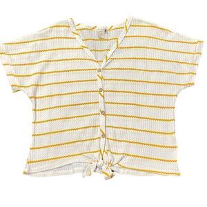 Paper Crane Short Sleeve Tie Front Stripe Waffle Knit Top