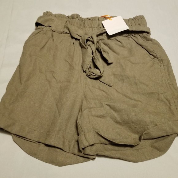 New with tags. Size small. Dark mocha colored paper bag shorts by orange creek. Double pocket with a tie belt and elastic waist.