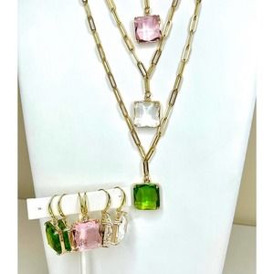 An adjustable paperclip style chain from choker to 20", with a beautiful multifaceted green glass stone. We also have the matching earrings listed as well as other colors available! Brand New, without tags, please see photos for close ups & measurements. As always, if you have any questions, please don't hesitate to ask & THANKS SO MUCH for stopping by #BunnyBlvd !!!