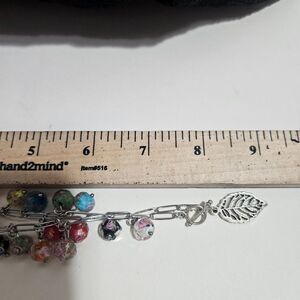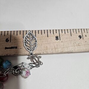 Silver tone paperclip chain with floral glass beads