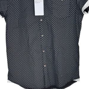 Paperdenim & Cloth Slim Fit Shirt XL Black White Geometric Short Sleeve NWT