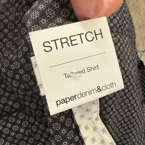 This item is a Paperdenim & Cloth Slim Fit Stretch Cotton Shirt XL Black White Geometric NWT. It is a size XL.This item is in New With Tags Condition.MSRP $68.00. See photos for tag and details.