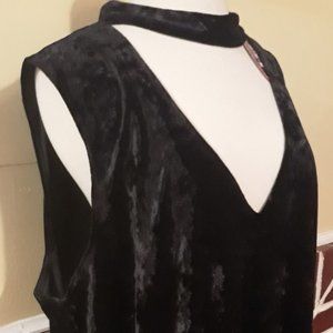Paperdoll Black Crushed Velvet Sleeveless Dress with neck detail and flared bottom! Perfect for a fall evening with a light jacket! Can be dressed up or down. New with tags!