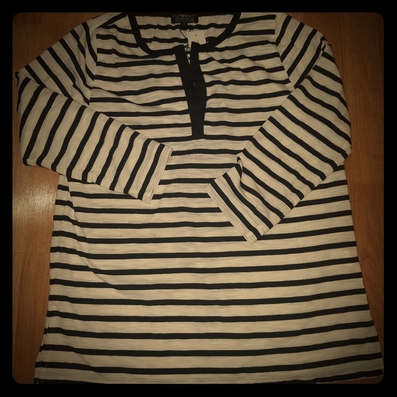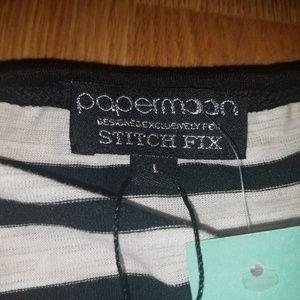 Papermoon Stitch Fix size Large Black White Stripe 3/4 Sleeve Shirt Blouse Top